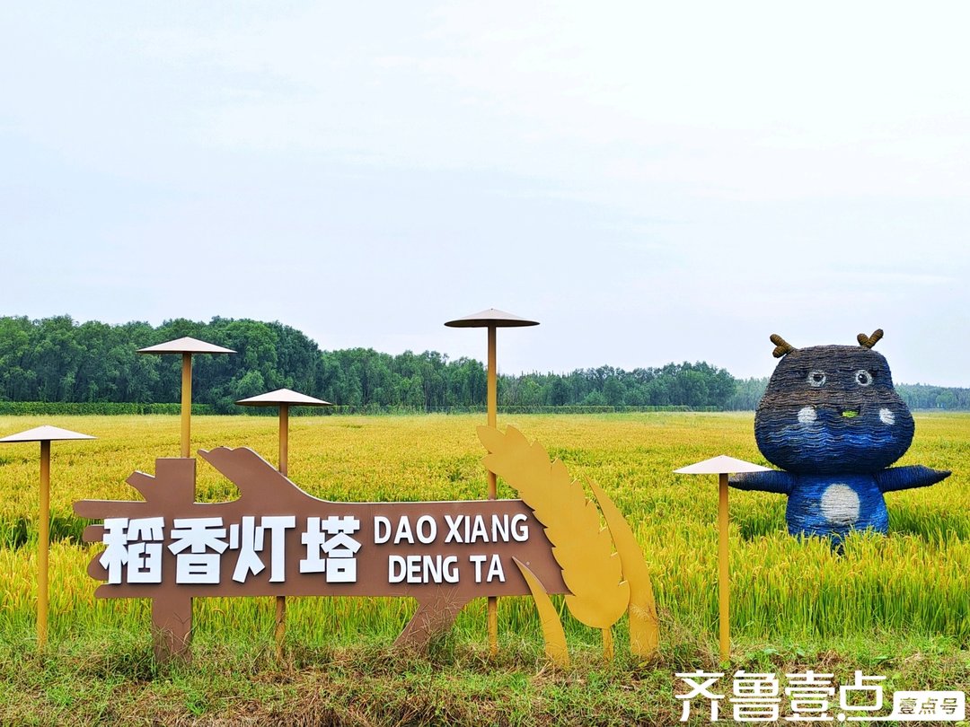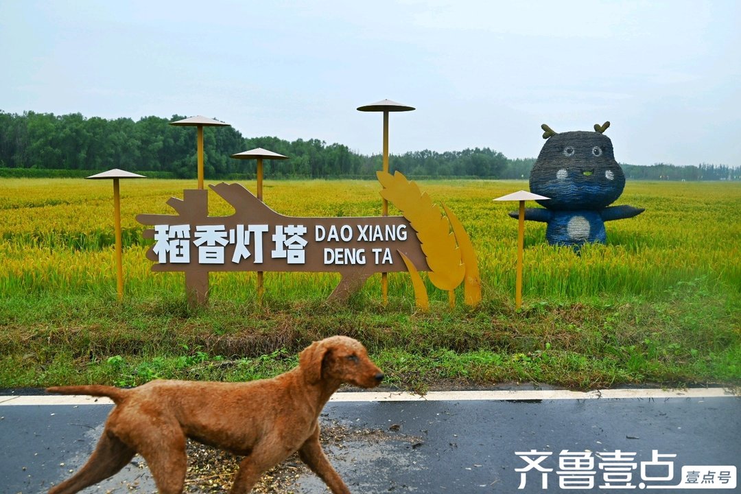 走进稻乡湾,“心中有诗意”的字样醒目地立在稻田边,似在邀请人们于这田园间找寻心灵的诗意栖息处。“稻香灯塔”旁,可爱的卡通造型伫立田间,为这片成熟的稻海增添了几分灵动与童趣,连路过的小狗都被这独特景致吸引,欢快地穿梭。