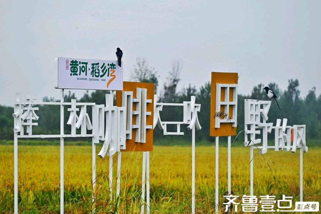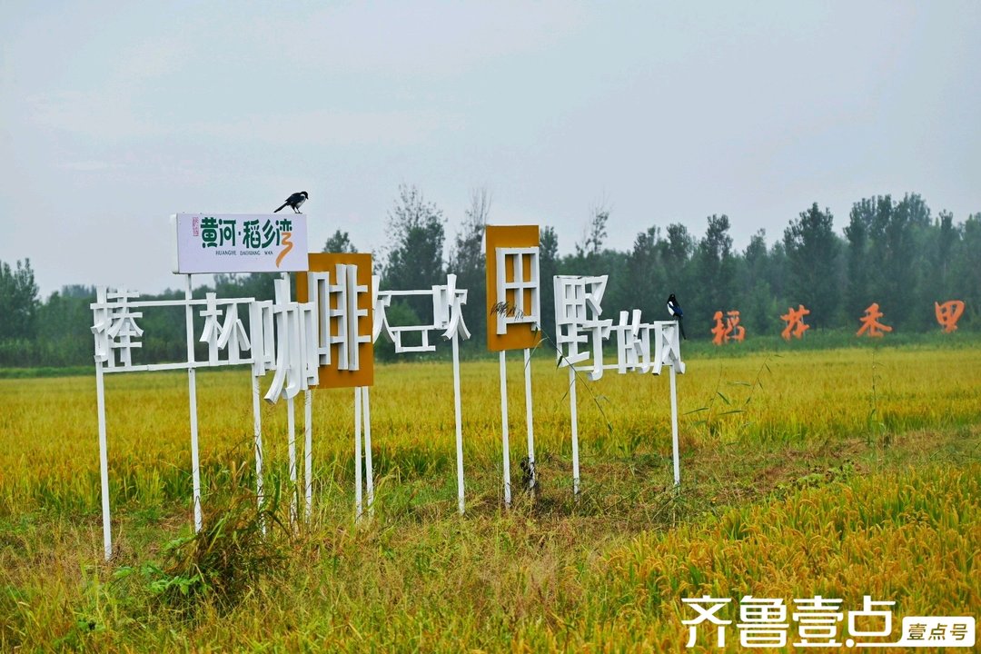 在稻田间,“捧一杯咖啡,吹田野的风”的标语与周围景致相融。想象着,手捧一杯香浓的咖啡,静坐在田埂旁,任田野的风拂过脸颊,看稻浪翻涌,听鸟儿在“黄河·稻乡湾”的标识牌上鸣叫,这一刻,城市的喧嚣被彻底隔绝,只剩下田园的宁静与惬意。