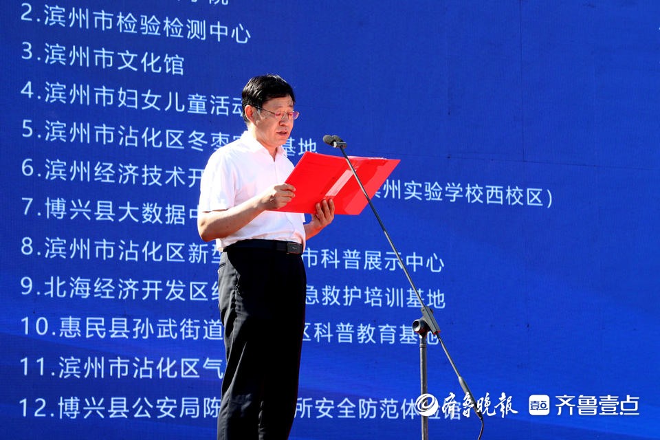 山东省科协党组成员、副主席、一级巡视员陈爱国,滨州市委常委、秘书长丁锋出席活动并分别讲话。市关工委副主任,市政协原副主席、一级巡视员吴国瑞,省科技馆党总支专职副书记杨冠楠出席活动。滨州市科协党组书记、主席吕德祥主持活动。