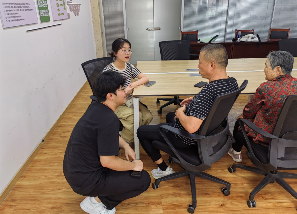 2024年7月18日上午9:00,团队抵达东营市悠然亭颐养中心的活动室,在院长的热情欢迎下开始了本次的调研之旅。在活动室中,团队成员与老人们一起跳舞、为他们表演节目、照顾他们的起居生活。通过这些活动,团队成员不仅增进了与老人们之间的情感交流,也更加深入地了解到老人们的日常生活状态和特殊需求。在接下来的时间里,团队成员分组进行了深入访谈,与老人们分享自己的故事,同时也聆听老人们讲述自己的经历。这些访谈帮助团队成员更全面地了解了老年人的心理状态和社会交往情况,特别是失智老人和行动不便的老人的需求差异。