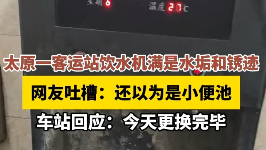 果然视频|太原一客运站饮水机满是水垢和锈迹,车站回应:今天更换完毕
