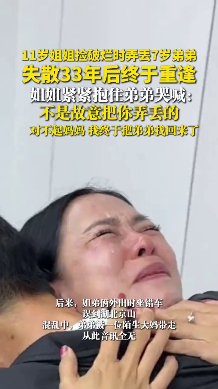 11岁姐姐捡破烂时弄丢7岁弟弟,失散33年后终于重逢,姐姐紧紧抱住弟弟哭喊:不是故意把你弄丢的
