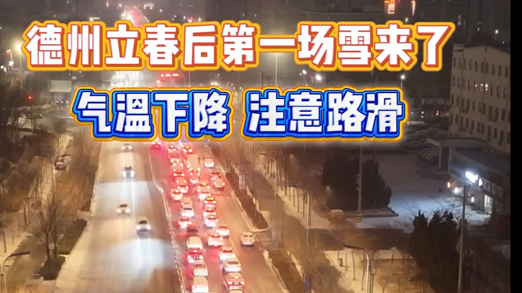 果然视频丨气温下降,注意路滑!德州立春后第一场雪来了