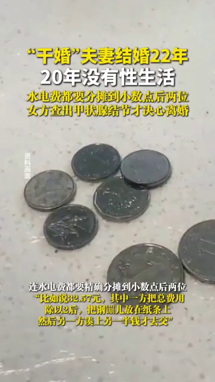 “干婚”夫妻结婚22年,20年没性生活,水电费都要分摊到小数点后两位,女方查出甲状腺结节决心离婚