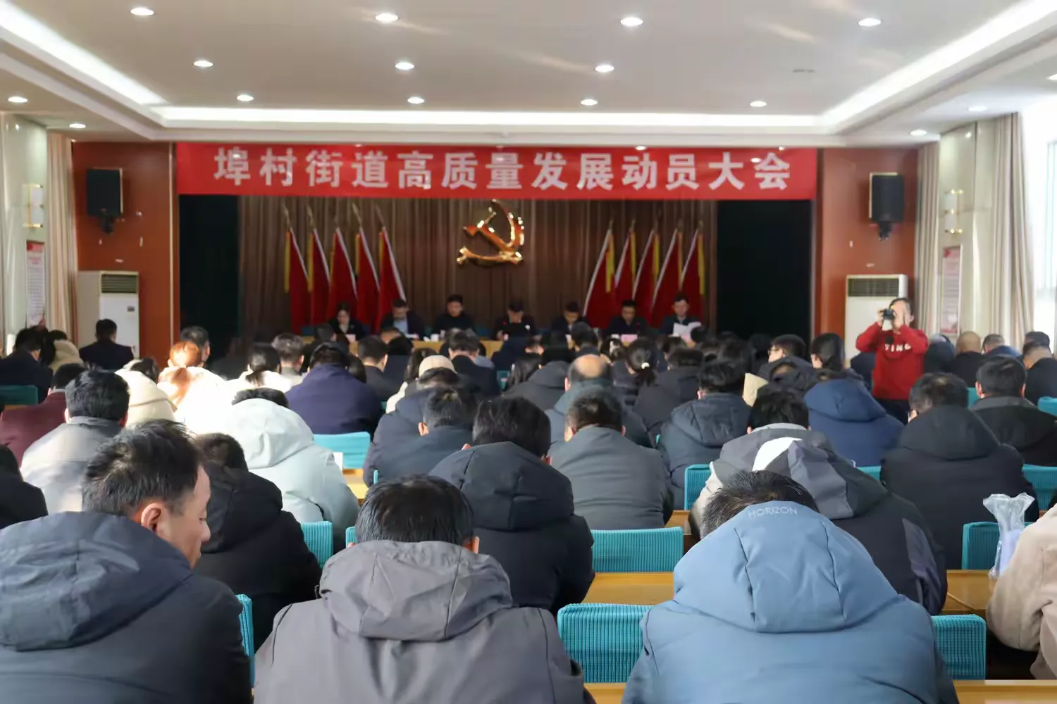 为深入贯彻全区项目提升年暨重点工作会议精神, 2月11日上午,埠村街道召开2025年高质量发展动员大会,安排2025年工作任务,凝心聚力推动埠村高质量发展再上新台阶、开创新局面。街道全体领导干部,双管单位负责人,各党建工作区副书记,各村党组织书记,全体机关干部参加大会。