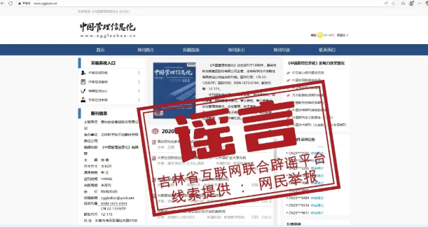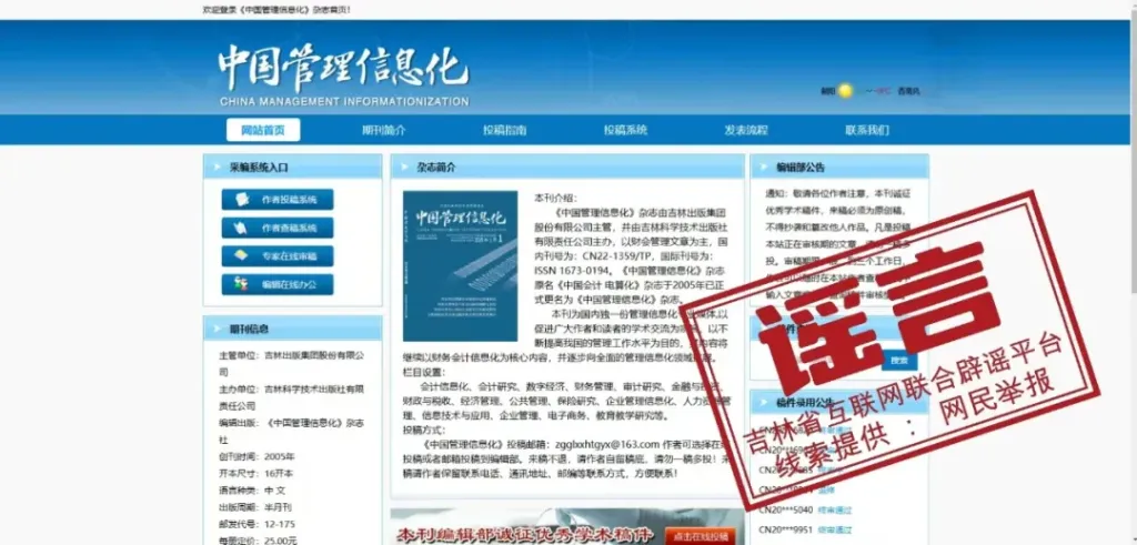 《中国管理信息化》编辑部同时公布了该期刊官方网站地址,并提醒网友称,“如发现仿冒诈骗类网站平台,可向吉林省互联网违法和不良信息举报中心或中央网信办举报中心举报。”