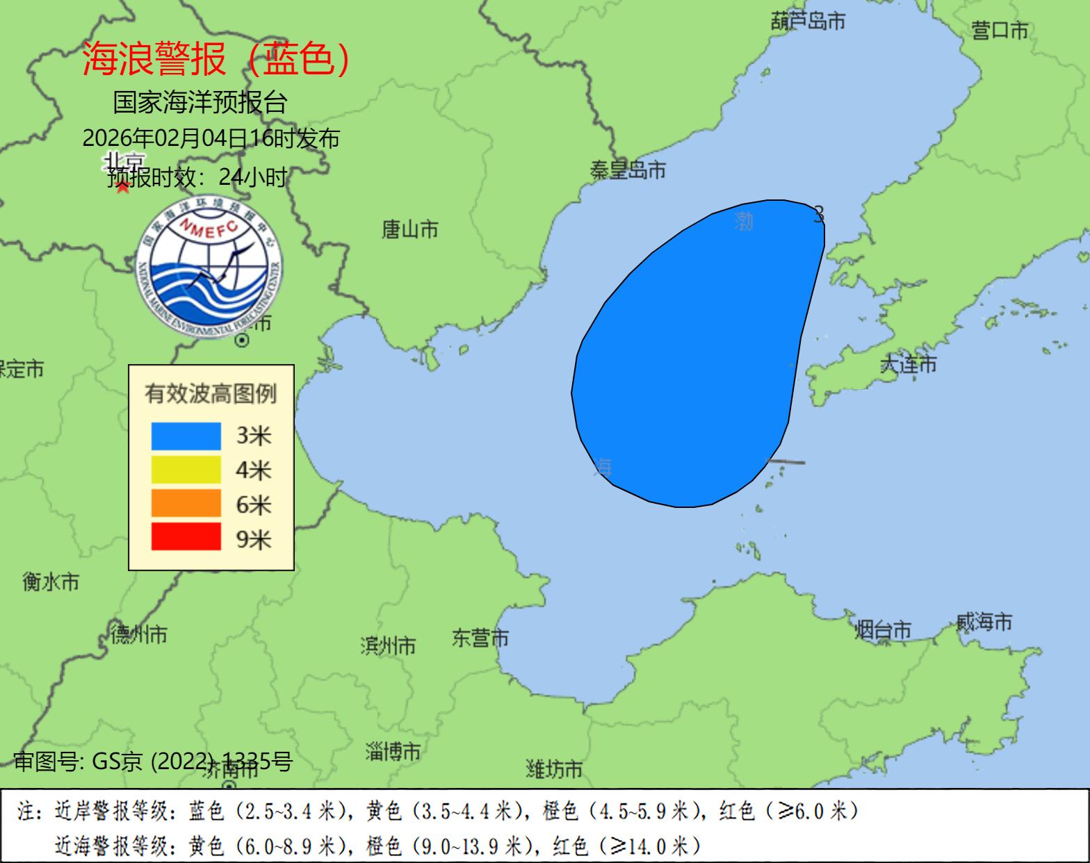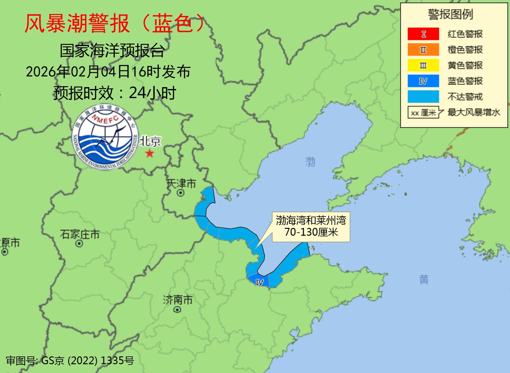 2月4日下午,国家海洋预报台根据《海洋灾害应急预案》发布风暴潮蓝色预警和海浪蓝色警报。