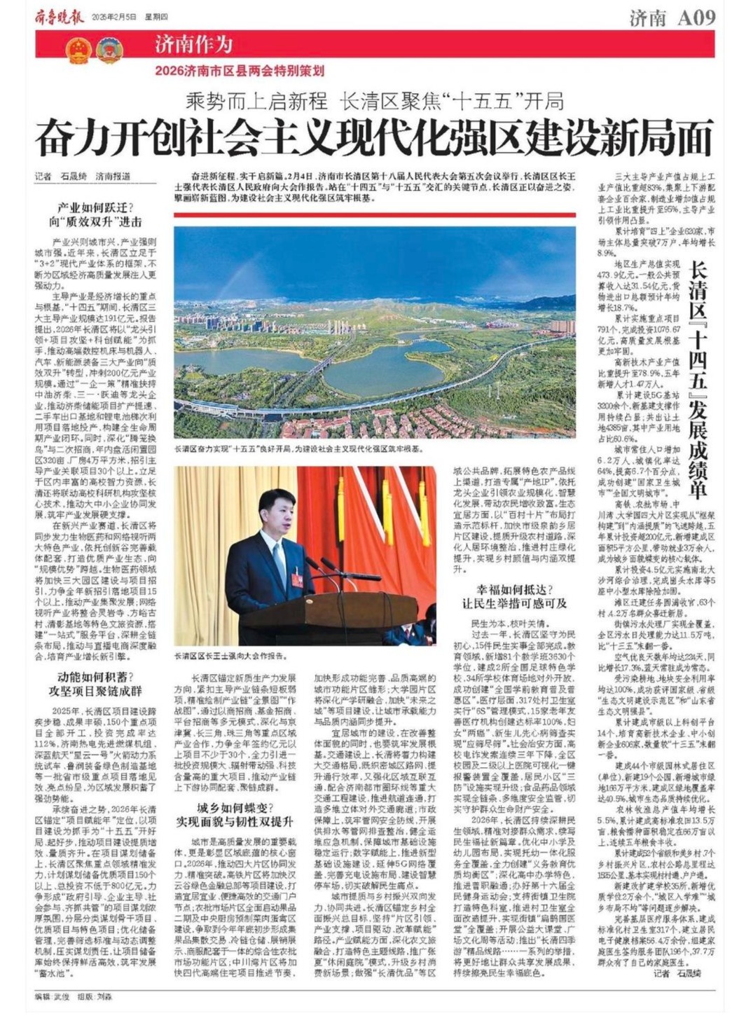 奋进新征程,实干启新篇。2月4日,济南市长清区第十八届人民代表大会第五次会议举行,长清区区长王士强代表长清区人民政府向大会作报告。站在“十四五”与“十五五”交汇的关键节点,长清区正以奋进之姿,擘画崭新蓝图,为建设社会主义现代化强区筑牢根基。