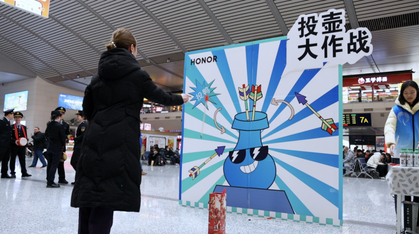 一旁的投壶游戏区传来阵阵欢笑。“本来等车挺枯燥的,这个投壶游戏既好玩又能学到安全知识,不仅打发了时间,还为旅途增添了不少乐趣。”正在参与游戏的返乡旅客李女士说。