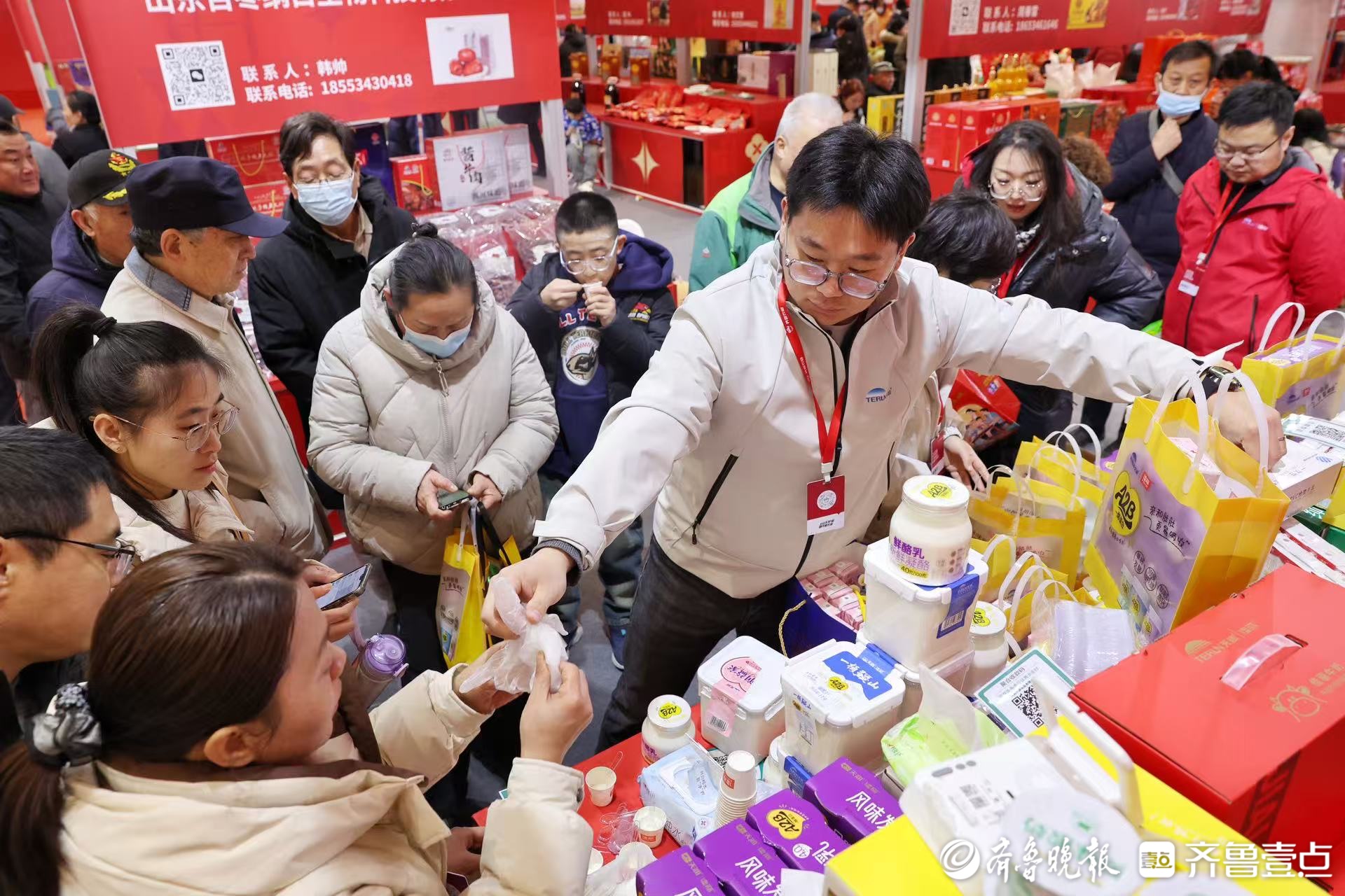记者在现场发现,契合新春走亲访友场景的奶制品、熟食以及礼盒装产品受到欢迎,成为采购的“主力军”。“我们带来的奶制品,一天就卖出去一半,三天总销售额达一万多元,货品基本售罄还接到不少预订。”山东黄河三角洲农高乳业有限公司现场负责人王峰说,作为东营的区域性乳企,该品牌在济南还处于推广阶段,本次年货会销量很理想。