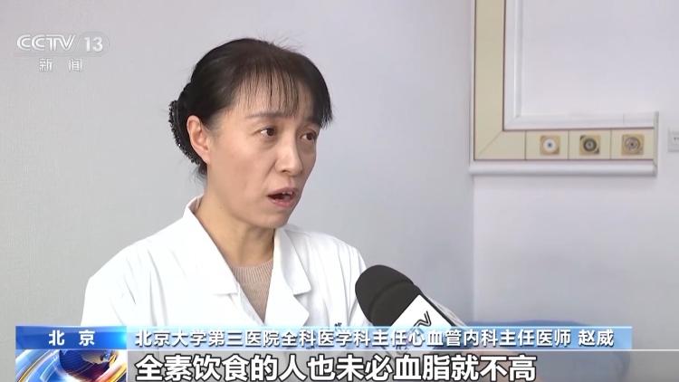 北京大学第三医院全科医学科主任心血管内科主任医师 赵威:全素饮食的人未必血脂就不高,很多人吃全素饮食,但是总热量摄入还是很高,包括一些油炸的素食、精致的碳水以及甜食等等,这些都会转化为脂肪,最终造成血脂升高。