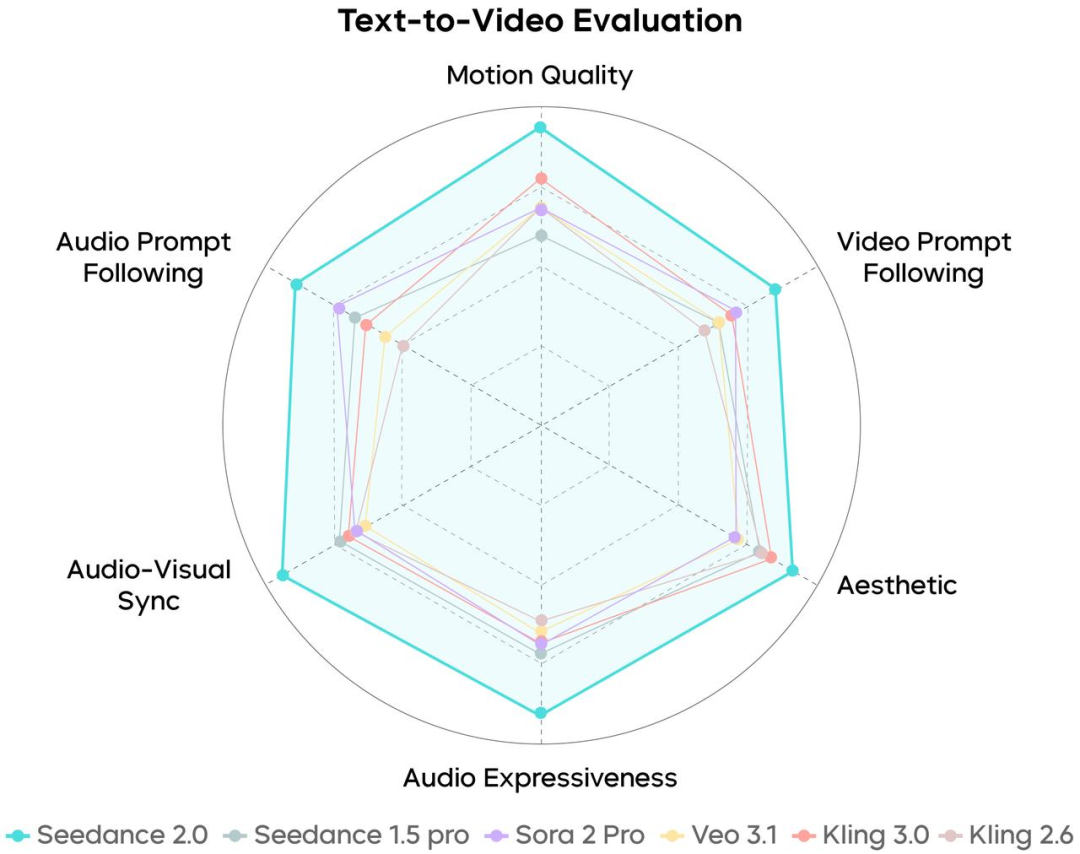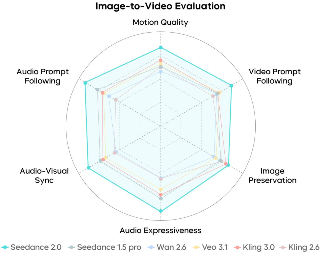 在基于多模态参考生成、复杂音视频指令遵循、复杂运动稳定性、专业镜头语言、音视频表现力及视听一体化协同等多维度的测评中,Seedance 2.0 的表现均处于业内领先水平。其在运动稳定性、指令遵循及画面美感维度均有显著提升,生成的复杂动作流畅细腻,并支持专业级组合运镜与叙事节奏控制。