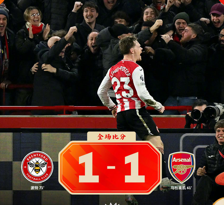 布伦特福德在主场成功逼平阿森纳,给曼城送上一份大礼包,本轮战罢曼城落后阿森纳4个积分,英超争冠悬念重启。