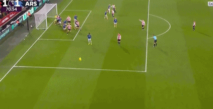 第61分钟,阿森纳界外球攻势,卡约德解围被断,因卡皮耶左路下底传中,马杜埃凯抢点头球吊射,凯莱赫鞭长莫及,阿森纳打破僵局,1-0!