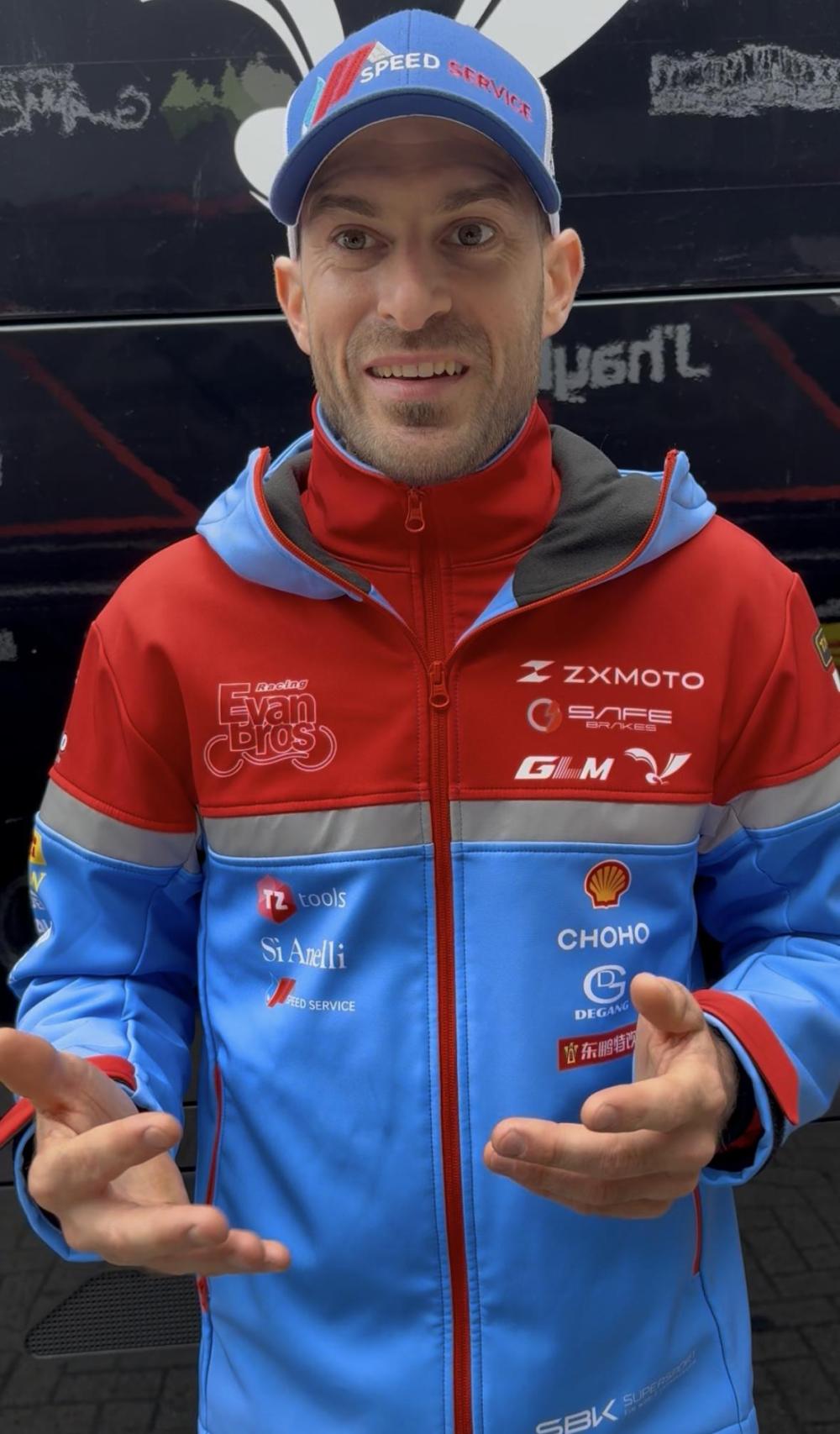图为“张雪机车”车队法国车手瓦伦丁·德比斯在赛后接受新华社记者采访