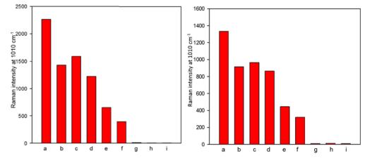 △e为在漂白剂中浸泡8分钟,f为在碳酸氢钠中浸泡8分钟,g为在碳酸氢钠中浸泡12分钟(右图为15分钟)的农药残留