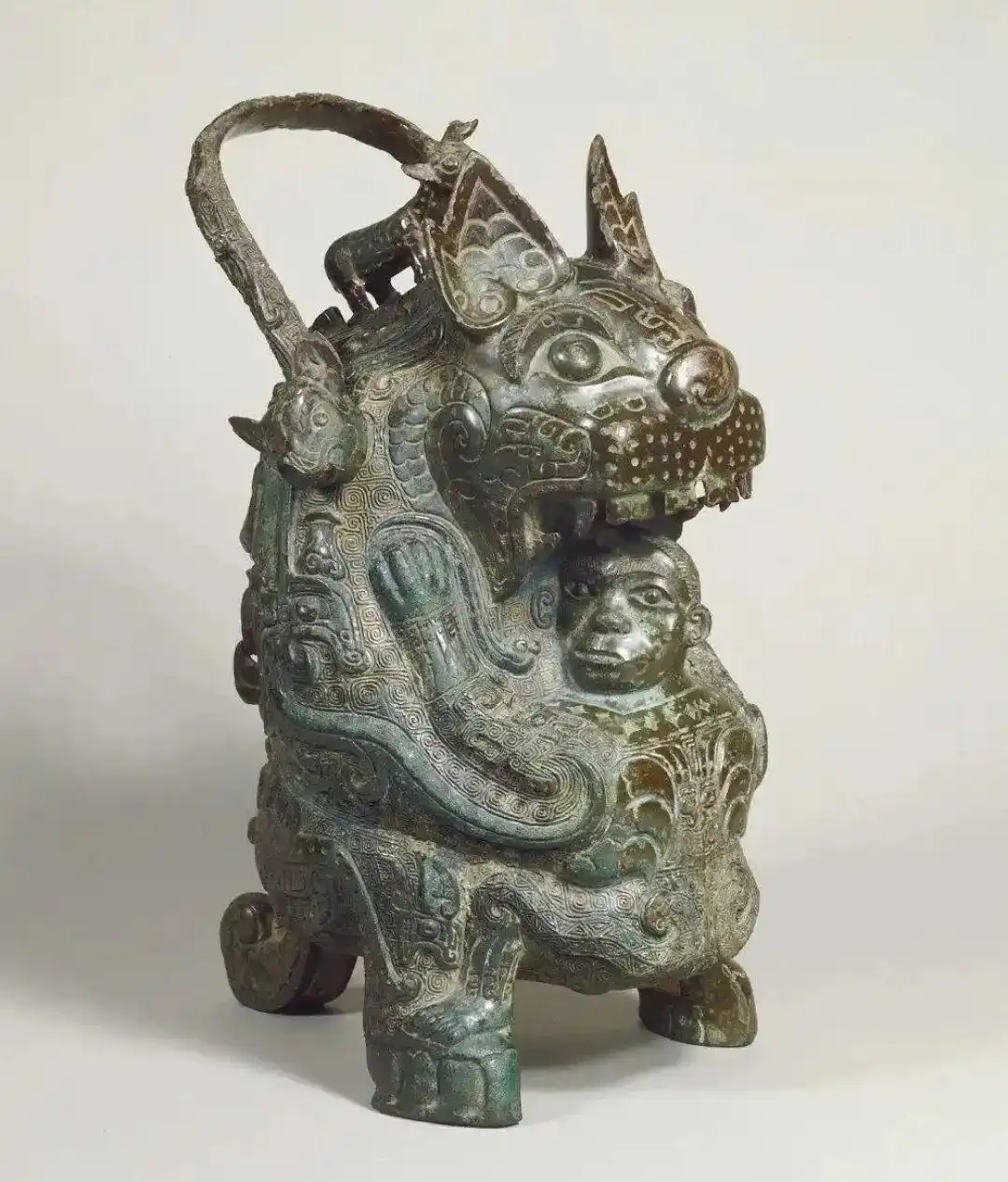 法国巴黎赛努奇博物馆也以收藏中国古代艺术品为主,共计1.2万件,其中虎食人卣(虎卣)可谓该馆镇馆之宝之一。虎卣是商代晚期祭祀礼器,在我国传世青铜器中堪称古代艺术的精绝之作,系国宝中的国宝。最初该卣由德国古董商埃德加·沃奇所有,一战德国战败后,法国政府没收虎卣并于1920年拍卖,赛努奇博物馆购入。青铜虎卣目前仅有两件存世,另一件现藏于日本京都鹿之谷的住友泉屋博古馆。