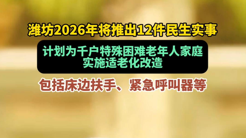 宜居颐养 健康潍坊|潍坊计划为千户特殊困难家庭实施适老化改造