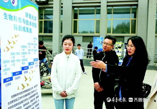 在济南大学机械学院楼前,一个个大学生科创作品的展示让人大开眼界,从各式机器人到可用于动物饲料的噬菌体研究,大学生们的科创之路已经走得很远。当跟着一个个院长们走进实验室的时候,便发现,这些科创成果的取得并非偶然。“本科生广泛参与到实验室中,也是学校在学生科创方面成绩突出的重要原因。”济南大学团委副书记胡春毅介绍。