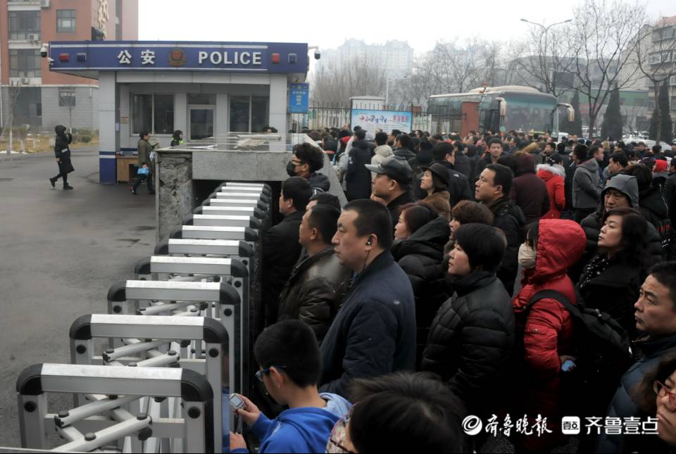 2018年山东美术统考结束,家长在考点门口翘首期待