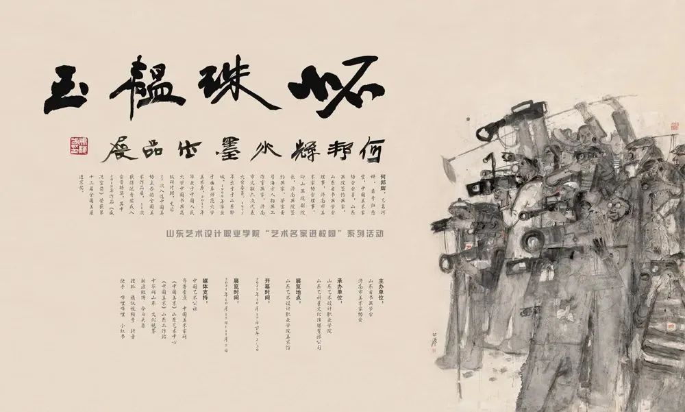 2021年10月15日下午2:30,由山东省书画学会、济南市美术家协会主办,山东艺术设计职业学院、山东艺科星文化传媒有限公司承办的“怀珠韫玉——何邦辉国画精品展”开幕式在山东艺术设计职业学院鹊华美术馆隆重开幕。