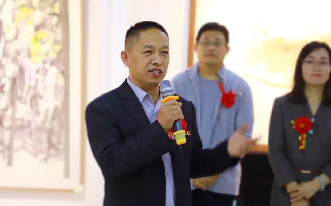出席本次开幕式的领导和嘉宾还有:济南市美术家协会副主席兼秘书长、大成美术馆馆长张春艳,济南市美术家协会副主席毕波,济南市历城区文联副主席吴春玉,省教育工委派驻我校党建联络员、齐鲁工业大学李民,省教育工委派驻我校党建联络员、山东艺术学院艺术研究院综合办公室主任修建峰,山东艺术设计职业学院党委委员、组织部部长、副校长孙立明。著名画家张波、王丛莲、娄萧、李兴杰、刘明雷、张建春、季长靖、赵昱、刘祥玉、周龙、何广亮、季杰等以及收藏界、媒体朋友和学院教师、学生代表。