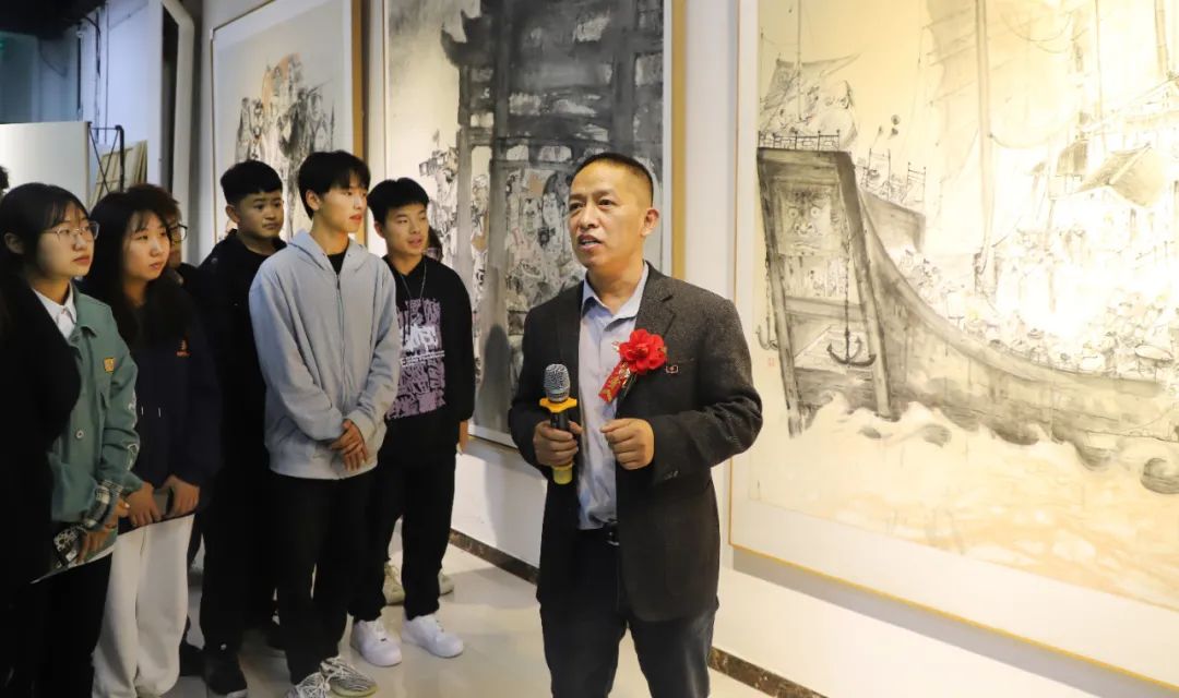 开幕式活动现场,鹊华美术馆内人头攒动,参观人员纷纷赞叹何邦辉先生生动恢宏、丝丝入扣的画作带来了极大的视觉冲击与艺术享受,不仅感受到了中国写意水墨人物画的魅力,更感受到了何邦辉对艺术的那份“任性”、“倔强”的精神。