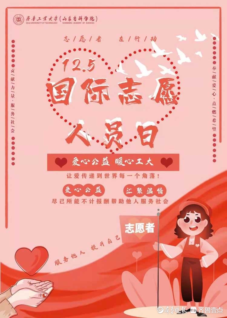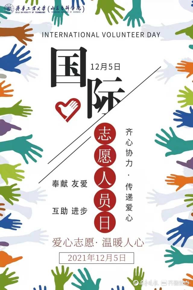 12月5日,齐鲁工业大学艺术设计学院的大学生志愿者们开展了“国际志愿人员日”宣传公益活动,呼吁更多大学生参与志愿者公益服务活动奉献爱心。