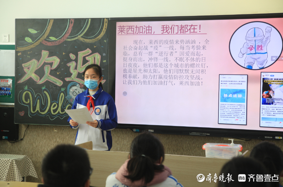 班会最后孩子们还为给莱西隔离师生加油、鼓劲。