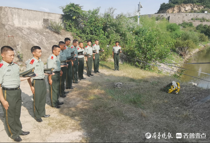 李林雨生前战友在他牺牲的水库前默哀悼念英雄