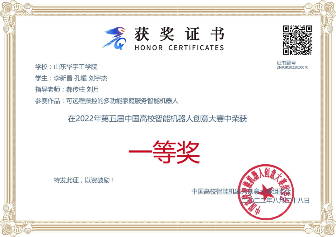 第五届中国高校智能机器人创意大赛决赛于2022年8月25日至29日举行,山东华宇工学院代表队荣获全国一等奖1项、二等奖2项的优异成绩。