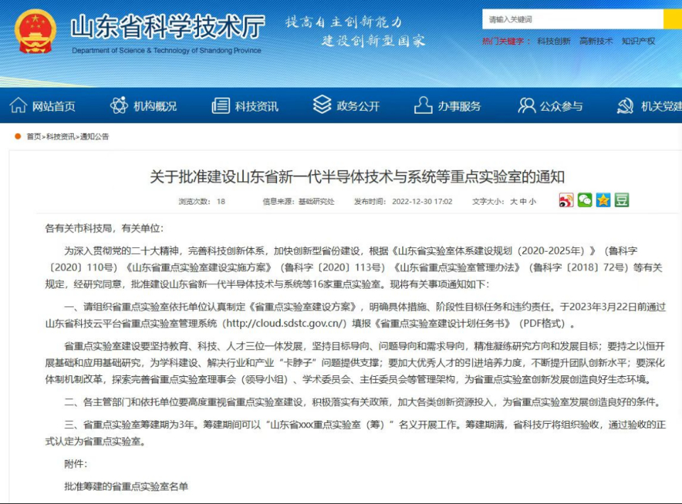 山东省重点实验室是我省科技创新平台体系的重要组成部分,是我省聚集和培养优秀学术带头人、创新团队,培育优势学科和专业,突破行业和产业“卡脖子”问题,开展基础科学研究的重要载体,也是培育国家重点实验室的后备力量。