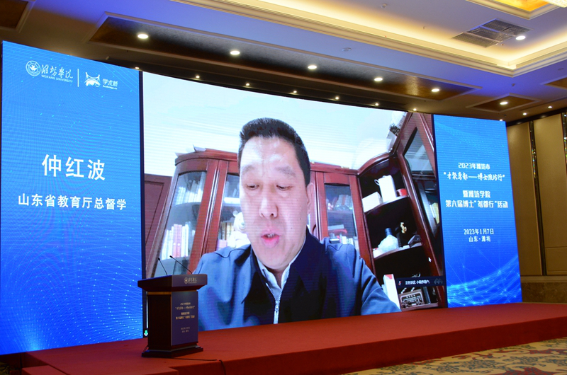 1月7日,由中共潍坊市委人才工作领导小组办公室、市人力资源和社会保障局、潍坊学院主办,市公共就业和人才服务中心、高新区党群工作部协办的2023年潍坊市“才聚鸢都——博士潍坊行”暨潍坊学院第六届博士“鸢都行”活动举行。山东省教育厅总督学仲红波,市委组织部、市人力资源和社会保障局、市公共就业和人才服务中心、高新区管委会等有关负责同志,潍坊学院党委书记李东和党委领导班子成员出席开幕式,开幕式由学校党委副书记、校长冯滨鲁主持。