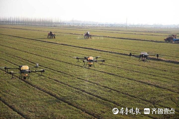 记者 周青先 通讯员 房德华 1月31日,临沂市郯城县农大家庭农场,工作人员操作植保无人机为小麦喷施叶面肥。 早春时节,气温回暖。被誉为“鲁南粮仓”的临沂市郯城县农民抢抓农时,积极组织植保无人机、农业植保机械开展麦田施肥作业,以促进小麦返青拔节,田间地头一派人勤春早的忙碌景象。