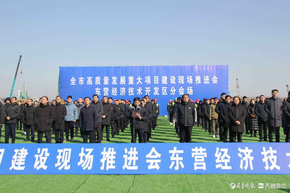 2月14日上午10点,2023年全市高质量发展重大项目建设现场推进会举行。东营经济技术开发区分会场设在总投资51.5亿元的东营海上风电装备产业园超大核心部件研发制造基地现场。东营经济技术开发区党工委书记、管委会主任康茂礼出席,并汇报重点项目建设情况。