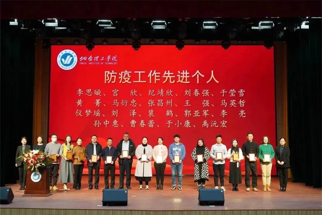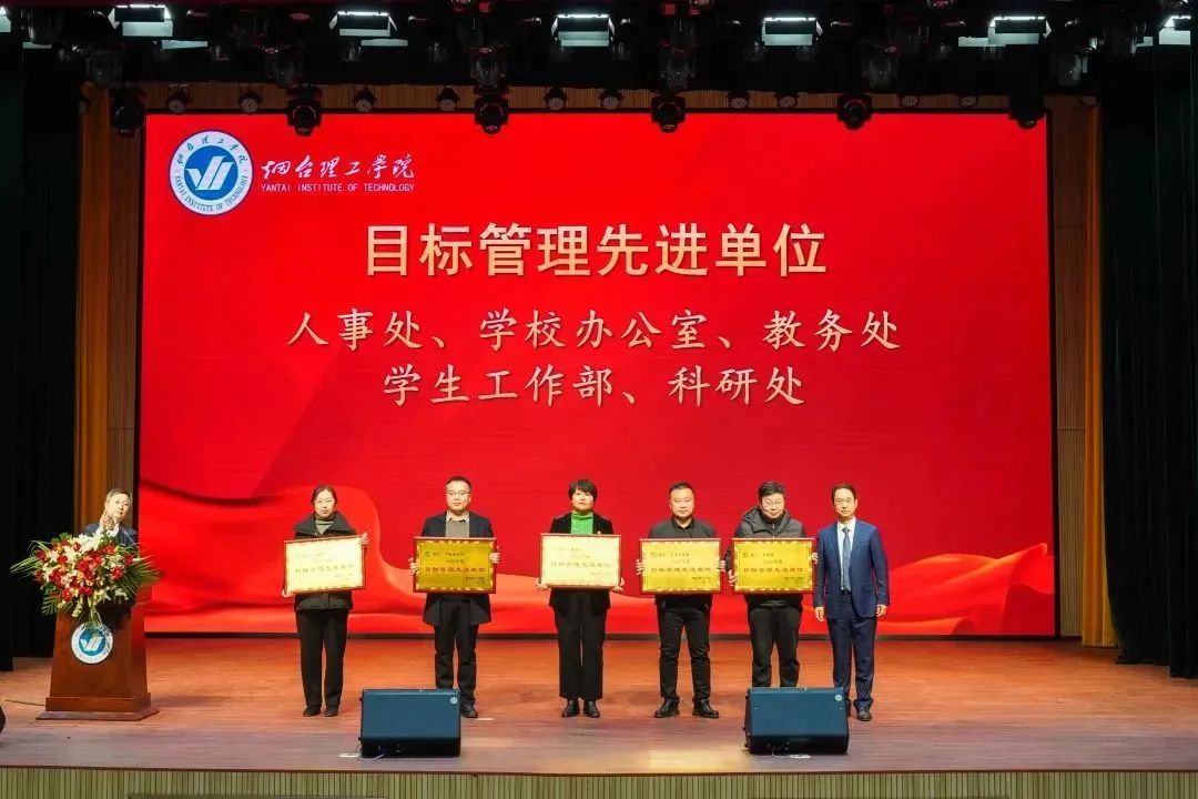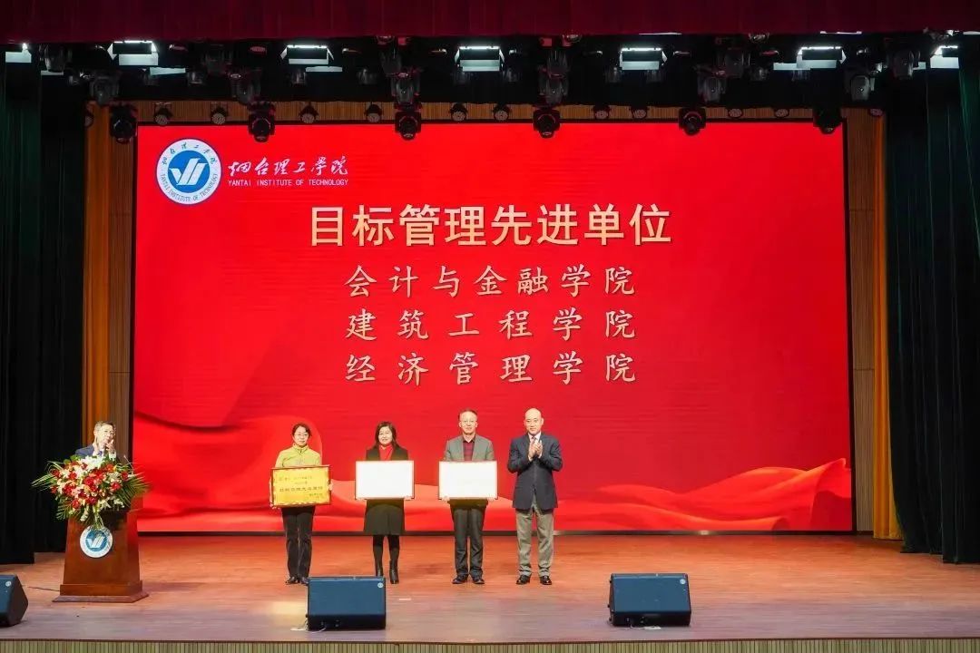 大会在庄严肃穆的国歌声中拉开序幕。会上,依据《烟理工校字〔2023〕3号关于表彰奖励2022年度先进单位和个人的决定》,表彰了一批在2022年度各项工作中业绩突出的单位、团体和个人。校领导依次上台颁奖,包括“目标管理先进单位-二级学院”“目标管理先进单位-职能部门”“教学工作先进单位”“教学创新先进集体”“党建与学生工作先进单位”“科研工作先进单位”“师资队伍建设先进单位”“招生工作先进单位”“考研工作先进单位”等9项单位奖和“突出贡献奖”“第七届教学名师”“教学创新奖”“优秀教师”“优秀辅导员”“优秀班主任”“先进工作者”“防疫工作先进个人”等8项团体、个人奖,激励和引导广大教职员工勇于担当,积极进取,干事创业。
