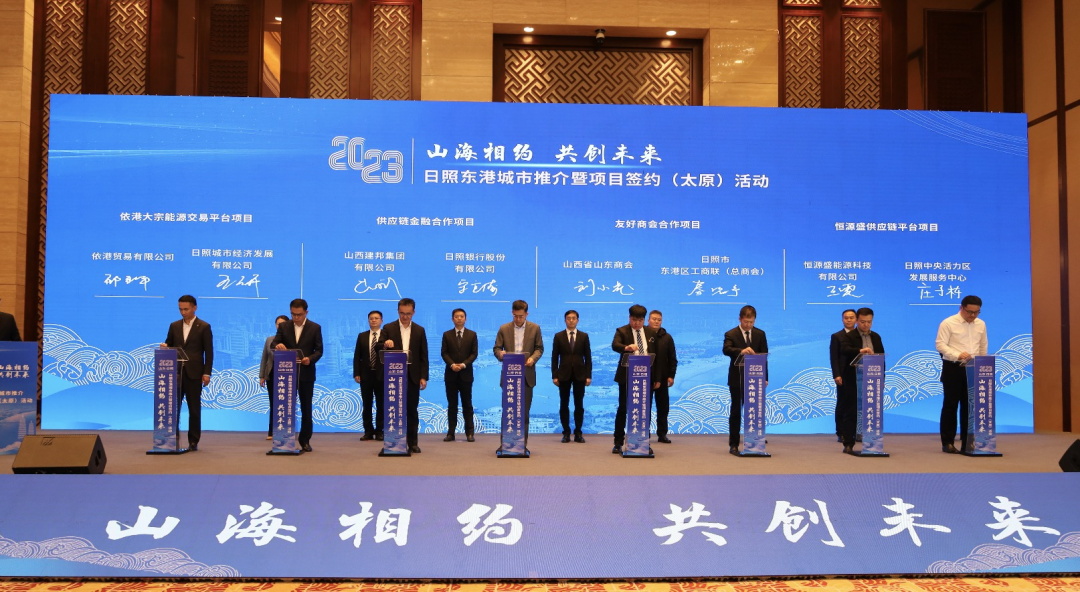 “山海相约、共创未来”。2月25日,日照东港城市推介暨项目签约(太原)活动举行,来自两地的商会、协会负责人和企业家等150余人相约于此,共商合作、共谋发展。期间,多个项目进行了集中签约,涉及港产城、金融、文旅、房产等领域,两地融合发展进入了新阶段。山西省山东商会会长、山西省工商联副主席、山西众诚集团董事长伊纪余致辞,东港区委书记刘祥龙致辞,区委副书记闫伟作产业发展推介,日照银行党委委员、副行长张茹茹作供应链金融推介,区委常委、办公室主任刘杰,日照中央活力区发展服务中心党组成员、副主任王海洋,空港经济开发区工委委员、管委副主任李兆玉参加了活动。区政府党组成员、副区长徐汉栋主持。