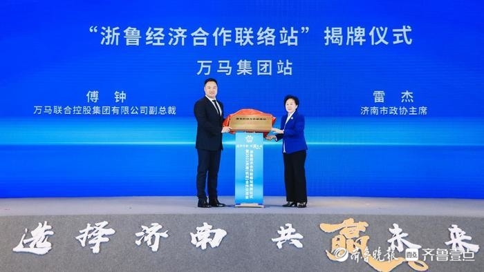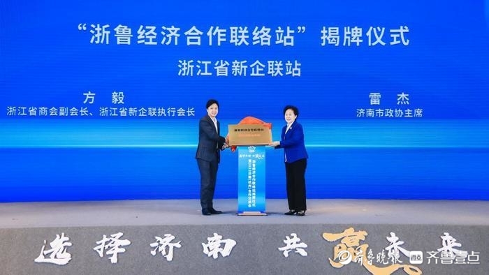 现场,济南市两大“双招双引”平台“浙鲁经济合作联络站”“浙鲁招才引智联络站”正式揭牌。