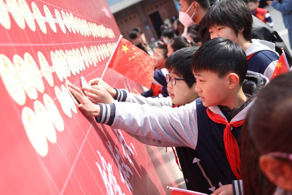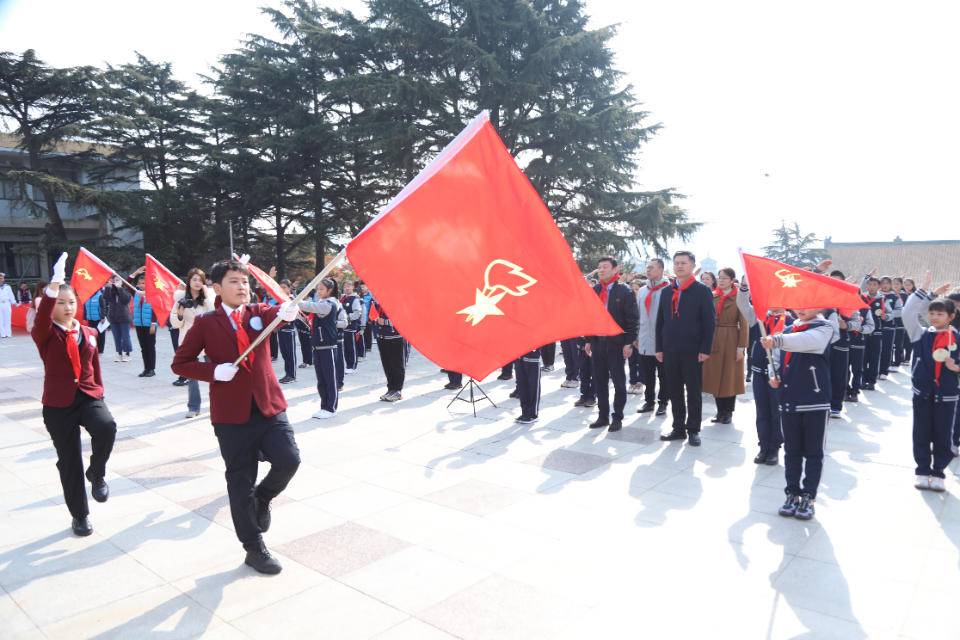 市南区教育和体育局把中小学生作为践行雷锋精神的关键主体和重要高地,典礼上市南区少先队“最是星火”行动隆重启动。共青团青岛市委学少部部长赵伟和市南区委教育工委委员、区教育体育局党组成员、副局长徐菲为启动仪式揭牌。火红的大队旗从队员们头顶缓缓拂过,所到之处,大家举起双手深情地托举抚摸。闪亮的奖章高高举起,“向雷锋同志学习”的真挚情感在队员们心中流淌。
