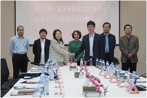 签约仪式上,安丘市委常委、副市长王晓丽对徐梅一行表示热烈欢迎,并介绍了安丘的基本情况和引才政策,表达了与学校进一步推进校地合作的愿望。徐梅介绍了学校发展的基本情况,重点介绍了学校人才培养和毕业生就业工作情况,她表示,经济管理学院专业设置与安丘产业结构非常契合,双方有很好的合作基础,希望进一步加强沟通交流,推动校地合作结出更多硕果。