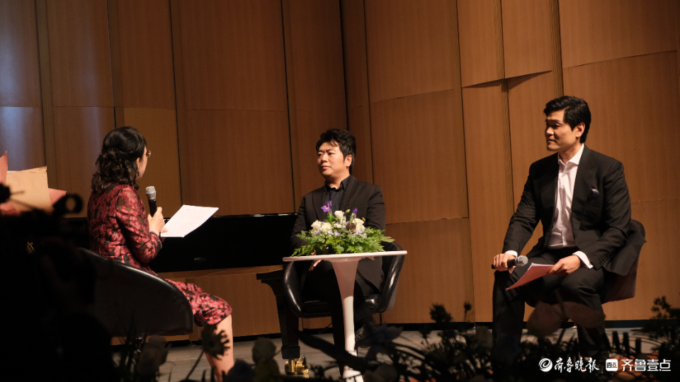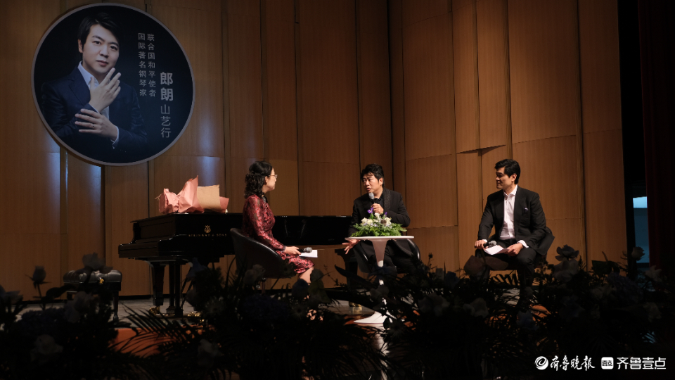 山东艺术学院音乐学院院长王歌群、钢琴系主任王瑶与郎朗进行访谈互动,音乐学院提前征集了学校师生想问的问题,郎朗一一解答,并分享自己钢琴演奏的经验和对音乐的理解感悟。