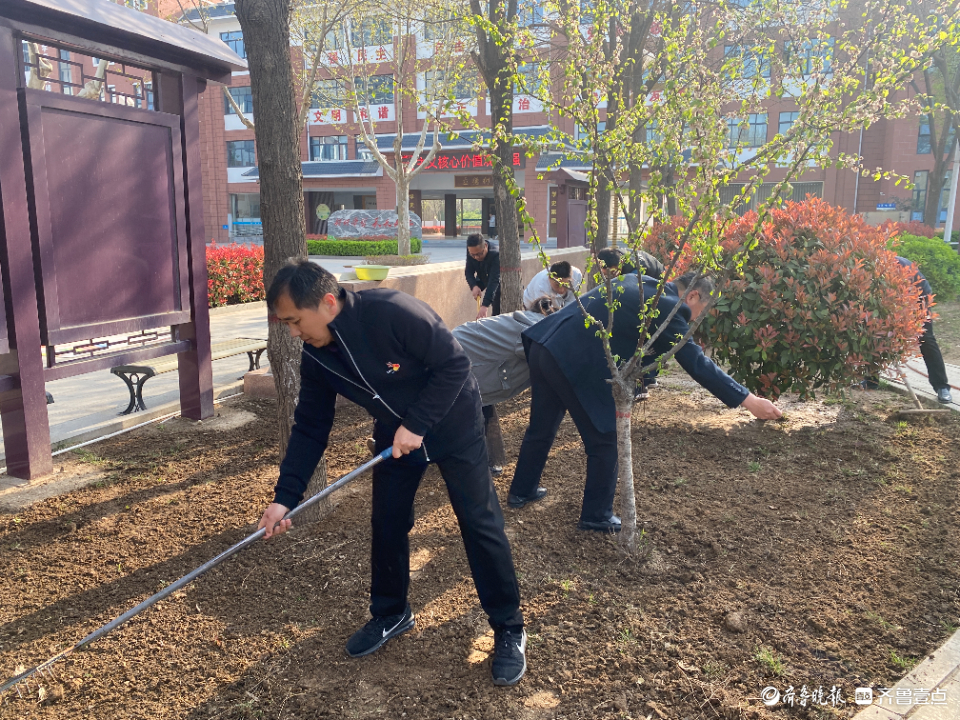 为打造整洁、优美、文明的校园环境,树立和发挥党员干部的良好形象和先锋模范带头作用,3月29日,聊城市实验小学开展主题为“美化校园”的党员义务劳动活动。