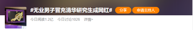 近日,一则关于#无业男子冒充清华研究生成网红#的新闻冲上微博热搜,引起网友广泛讨论。