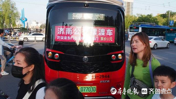 五一长假首日,济南趵突泉景区东门外,济南公交开通趵突泉到大明湖的摆渡车。