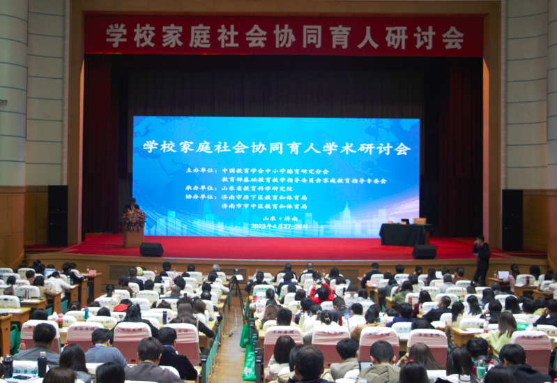 为深入贯彻党的二十大精神和习近平总书记关于教育工作的重要论述,落实《家庭教育促进法》和教育部等十三部门联合印发的《关于健全学校家庭社会协同育人机制的意见》,推动新时代中国特色学校家庭社会协同育人创新发展,4月26日至28日,全国“学校家庭社会协同育人研讨会”在济南顺利召开。大会由教育部基础教育教学指导委员会家庭教育指导专业委员会(以下简称“教育部家庭教育指导专委会”)和中国教育学会中小学德育研究分会联合主办,山东省教育科学研究院承办、济南市市中区教育和体育局、济南市历下区教育和体育局协办。教育部基础教育司副司长游森、中国教育学会秘书长杨银付和山东省教育厅副厅长仲红波出席会议,教育部家庭教育指导专委会全体委员、来自全国23个省市的各区域教育管理部门和教科研机构相关人员全国中小学及幼儿园校长及德育干部等共约600多人参加会议。