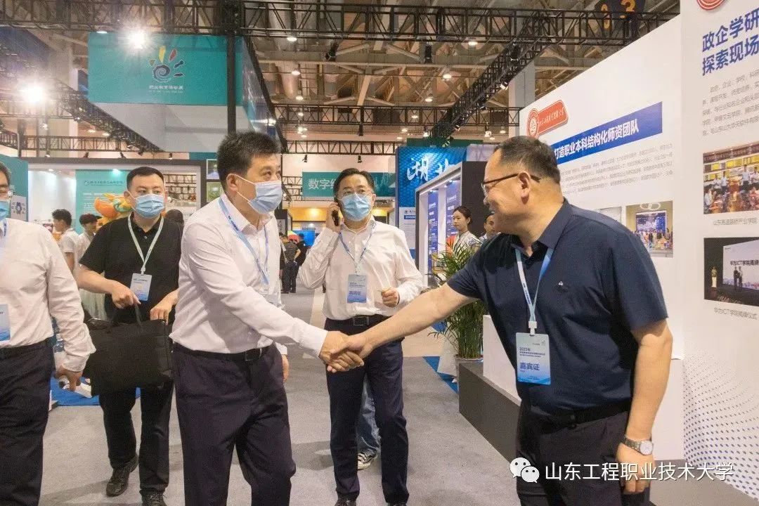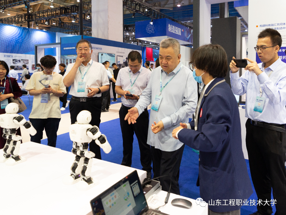5月14日,2023年职业教育活动周全国启动仪式暨全国职业院校技能大赛开幕式在潍坊市鲁台会展中心举办。山东工程职业技术大学督学李佩禹,党委副书记、副校长李梅松参加开幕式,相关部门负责人、智能制造学院、人工智能学院师生代表参加了“制造强国”板块现场展示活动。