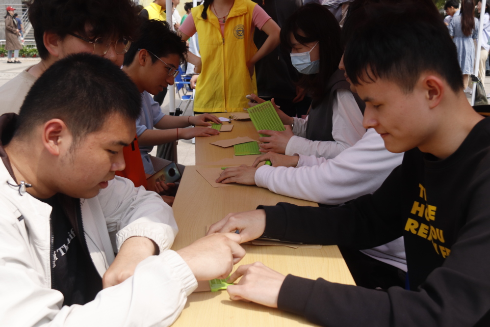融合体验游共有全国残运会冠军花样跳绳教学、趣味性的手语猜猜猜、贴心的推拿服务、盲人象棋对弈、手工串珠教学等八个深度体验项目。活动现场吸引了不少在校师生和留学生参与体验。大家感叹于残疾学生们的自强和自立,同时也体会到他们的不易,纷纷表示要在日常生活学习中给予他们更多关爱和帮助,奉献自己的力量。