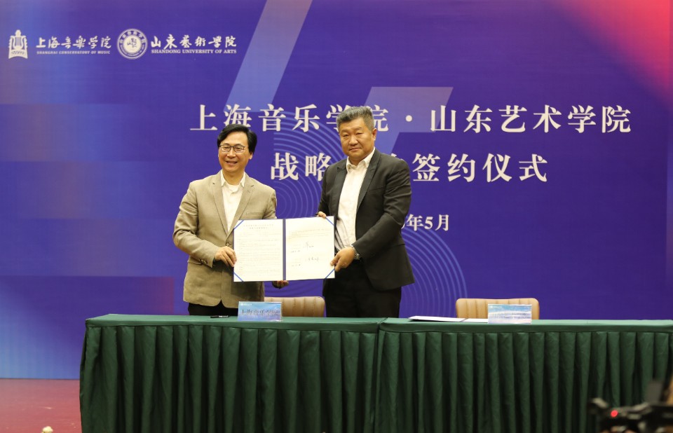 上午10时,上海音乐学院、山东艺术学院战略合作签约仪式在文东校区综合楼音乐厅举行,廖昌永、徐青峰分别致辞并代表两校在战略合作协议书上签字。