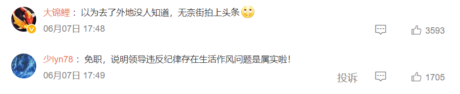 针对此事引起网友热议,有网友称“免职,说明领导违反纪律存在生活作风问题属实啦”;还有网友认为“当你看见一只蟑螂的时候,说明在黑暗处已经有数不清的蟑螂了”“那女的不处理吗?”;也有网友调侃“以为去了外地没人知道,无奈街拍上了头条”“这手牵的好,把钱途牵没了”。