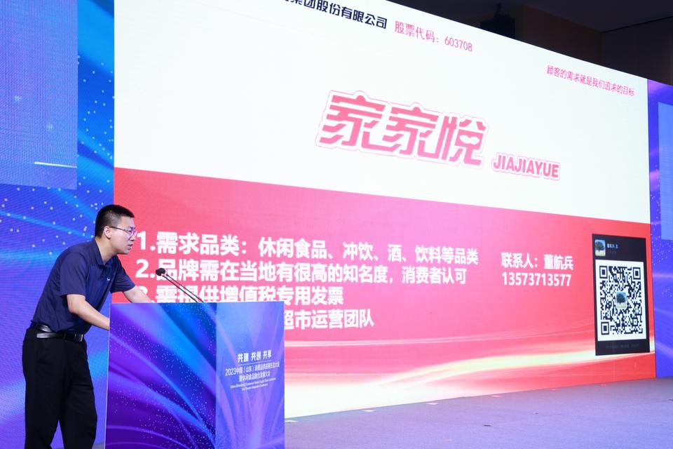 此外,大会还立足“实效性”目的,搭建起集中而直接的供需对接机制,让与会者当场实现“你需要什么,我能做什么”的高效沟通。现场,家家悦集团等采购企业发布采购需求,沟帮子熏鸡等生产企业进行了产品发布。